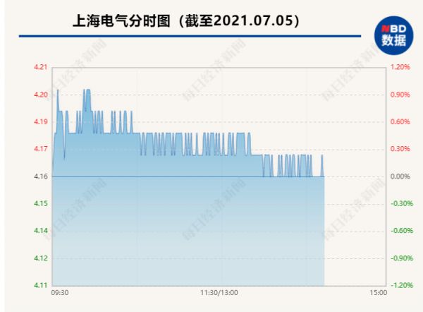 截至今日收盘,上海电气涨0.24%,股价报4.17元,总市值655亿元。