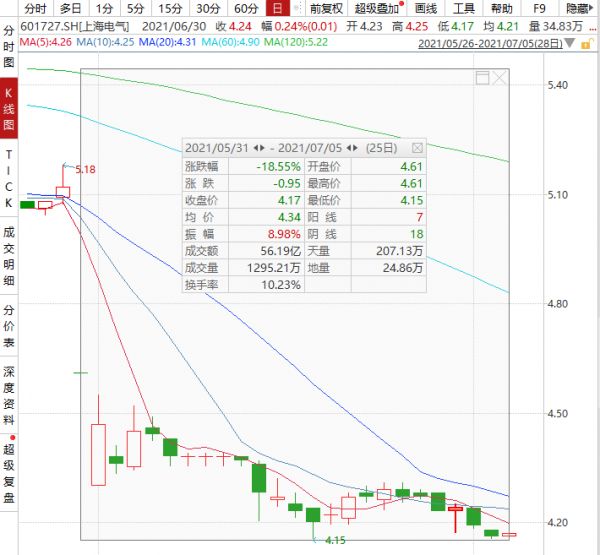 自5月31日至今,上海电气股价持续低迷。