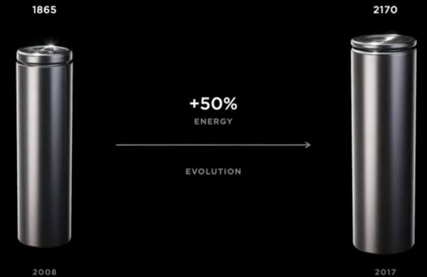 2017年初,松下联合特斯拉推出更高效,更快捷的新产品——21700锂电池。该电池相较于18650电池,单体容量提升35%,能量密度提升了20%,系统售价下降约9%,后来装载在Model 3上,引起一股21700电池热。