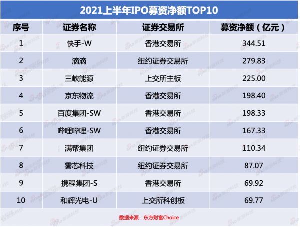 2021上半年IPO盘点:哪家公司登顶“募资王”?