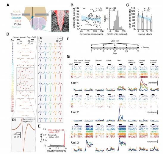 在嗅觉系统中,初级嗅觉皮层(梨状皮层)的活动被认为决定了气味的一致性。在这里,论文中给出了维持数周的单个神经元的电生理学记录的结果,以检查小鼠梨状皮层中气味诱发反应的稳定性。
