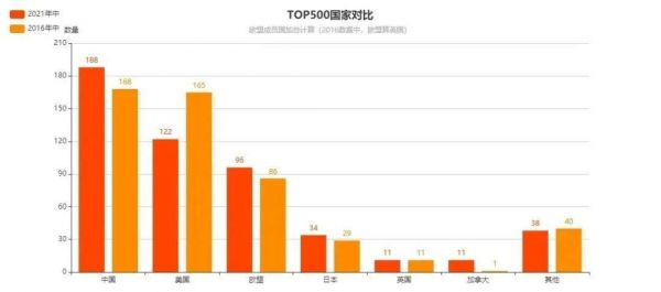 2016年中,中国超算数量首次超越美国,成为全球超算第一大国。5年后,中美在超算数量上的差距进一步增大,从5年前的3台扩大为目前的66台。