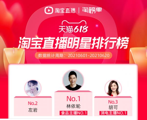 淘宝直播间经历了明星主播的迭代。据淘宝直播发布的榜单显示,2021年天猫618明星直播带货排名榜中TOP10中有林依轮、左岩、胡可、刘涛、叶一茜等明星艺人,这完全取代了去年618期间带货排名榜中的吴亦凡、鹿晗、李易峰、华晨宇、姚晨等阵容。
