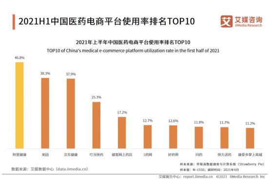 根据艾瑞数据,阿里健康、美团、京东健康使用率均在30%以上,处于第一梯队;而叮当快药只能处在为第二梯队,送药上门的业务正被互联网巨头一点点蚕食。
