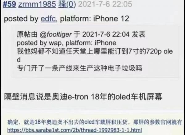 新机型发布后,一张截图在网上流传,称 Switch OLED 是奥迪的车规屏幕。这个当然可以当作段子一笑了之,但在 2021 年,720P Pentile 排列的 OLED 屏幕确实算得上是老古董,甚至都很难找到供应商。如果说 Switch 发布的 2017 年,720P 还不至于是个太大的槽点,那么 2021 年这确实是个问题。