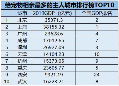 而在2019年给宠物相亲最多的10个城市中,中国城市GDP前十中占了9个,唯一落榜的是苏州,顶替其上榜的则是西安。