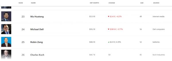 福布斯富豪榜的实时榜单显示,宁德时代董事长曾毓群身家达到480亿美元(约合3108亿元人民币),位列全球第25位。