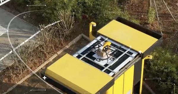 无人机配送货品至无人货架 图源:美团