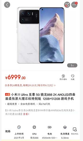 小米、OPPO、vivo三家首当其冲。2020年12月,小米率先推出了搭载骁龙888芯片的小米11,起售价3999元,最高价为4699元。今年上半年,小米再次推出小米11Pro和小米11ultra两款高端产品,最高价到了7000元左右。