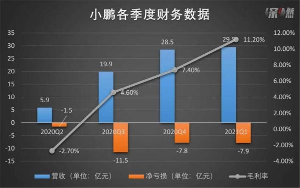 但小鹏依旧是亏损的,2021年第一季度亏了7.9亿元,2020年第四季度亏损7.8亿元。小鹏的解释是,增加了研发的投入以及公允价值变动。不过好在,从去年第三季度开始,小鹏的毛利率就转正了,2021年一季度上涨到11.2%。