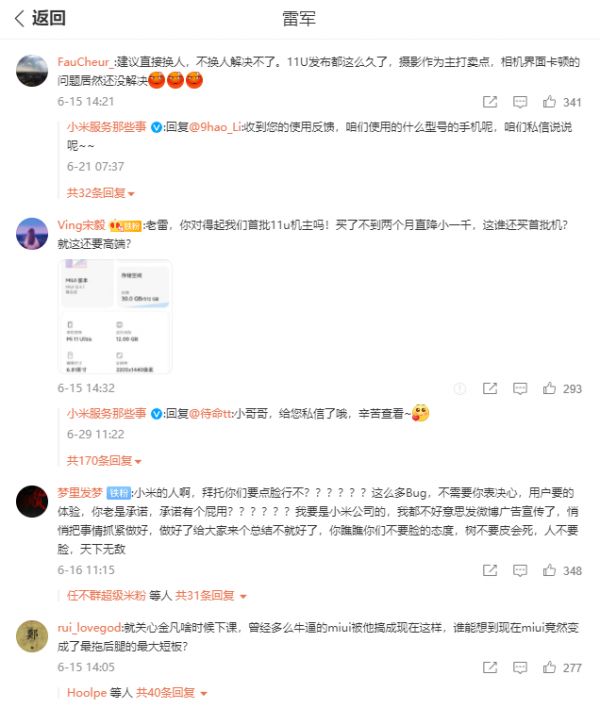 最后,除开渠道之外,小米近两年的产品也并非能够做到完完全全的同价位之王水准,那个给小米打下无数好口碑的MIUI,如今却因为体验不佳等原因被不少用户批评,经常也会有网友跑到小米官微或是雷军微博下评论,要求提升MIUI的使用体验。
