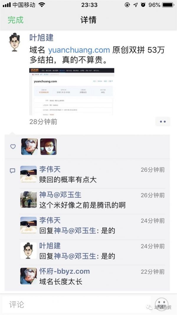 今晚刷朋友圈的时候,突然看到域名城domain.cn董事长叶旭建叶总发布的一条快讯:域名yuanchuang.com原创以53.5万的价格结拍。