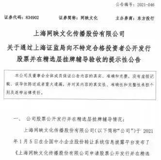 在政策推出的2021年3月份,当时只有36家公司成为精选层挂牌公司,英雄互娱和网映文化都不在精选层内,如今7月份网映文化已经提交了挂牌精选层的申请,正待审核;而英雄互娱也同步在接受券商辅导。