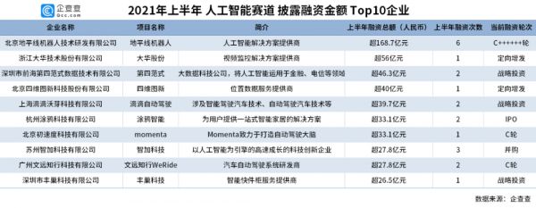 1 上半年人工智能赛道吸金近千亿元,其中自动驾驶项目备受资本青睐