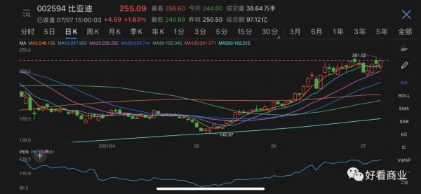 在A股,比亚迪股价在横盘一段时间后,过去不到2个月时间里涨超85%。