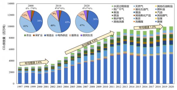 我国碳排放情况怎么样?我国自1990年代开始快速工业化,煤炭使用量在2002年加入WTO后快速增长,导致我国二氧化碳的排放量的年均增速一度达10%;2010年后,我国开始大力优化能源结构及产业结构,煤炭的使用量开始大幅下降,目前碳排放已经到了平台期波动状况。