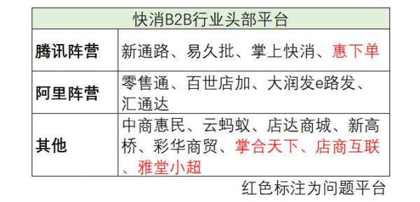 上述B2B平台,另有国资老大哥怡亚通,以及仍未站队的中商惠民等,基本就是现在行业的头部力量。