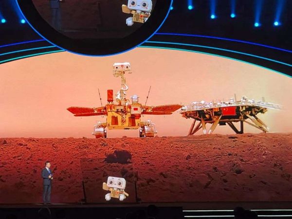 举行四届的WAIC,第一次迎来“星际嘉宾”——祝融号。这个有着方方的大脑、圆圆的眼睛和两个太阳能光伏板翅膀的小可爱,是百度智能云带来的“火星车数字人”。尽管都是“车”,火星上的祝融号与百度正在地球上造的Apollo显然完全不同,但这并不妨碍李彦宏考虑,如果将来人类登上火星,是否能把自家的汽车也送到“乌托邦平原”上逛一逛。