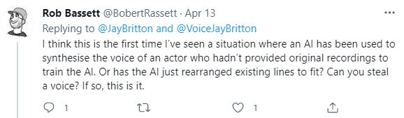 Mod 发布后,配音演员 Jay Britton 发推攻击这种“毫无灵魂”地用 AI 替代真人声优的行为: