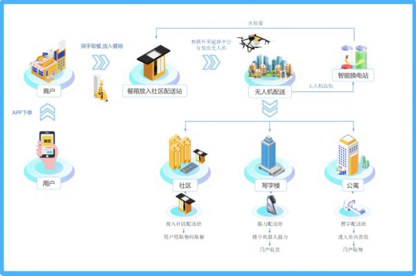 这不是科幻大片里的场景,而是美团最近正在尝试的无人机取送餐流程,也是美团首次对外披露自主研发的城市低空物流模式。