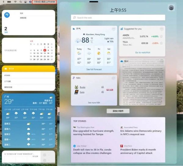 ▲左为 Mac 桌面小部件,右为 Windows 11 桌面小部件