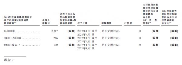 截至最后实际可行日期,小鹏汽车已根据2019年股权激励计划向超过2700名员工授出过限制性股份单位奖励,已授予但未行使的限制性股份单位总数为4.3千万股A类普通股,详情如下图。
