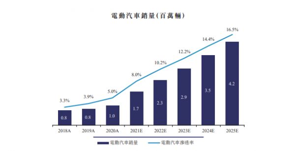 IHS Markit数据显示,中国拥有全球最大的电动汽车市场。2020年中国电动汽车销售量超过100万辆,占全球市场的45.3%,是美国电动汽车市场规模的3.7倍。预计2020年到2025年,中国电动汽车销量将以33.8%的复合年增长率增长,到2025年将达到420万辆,这将超过美国及欧洲电动汽车销量的总和。