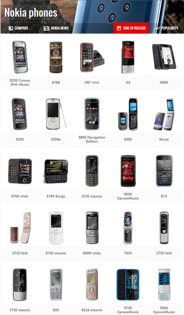 再让我们来看看其他手机厂商有没有用过「13」的名称吧,首先从之前的绝对霸主诺基亚找起,翻了十几页之后竟然一个「13」都没有,除了 5132、6131 这样藏在数字中间的。再接着翻了一遍三星、摩托罗拉、索尼……竟然全都没有!