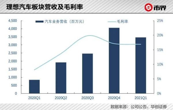 一众造车新势力中,理想汽车的赚钱能力目前明显领先,去年四季度毛利率一度接近20%,一季度略有下滑,为17.3%。