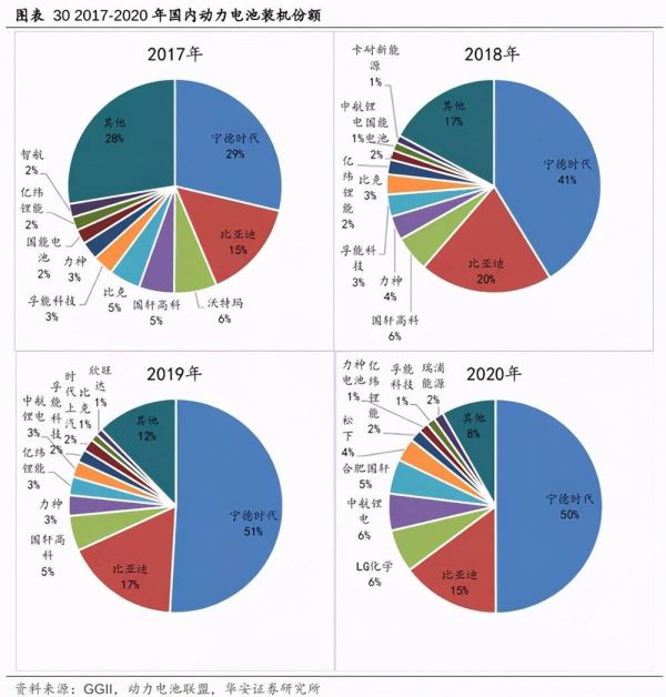 如果把宁德时代、比亚迪和LG化学的份额扣掉,全市场只剩下1/3的机会让二线动力电池厂商们厮杀抢夺。