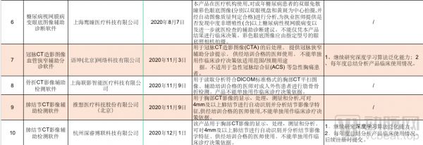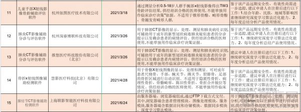 在累积审批方面,已有12个独立软件通过了审批,包括心电、CT-FFR、CT肺炎、CT肺结节、CTA、眼底糖网、CT骨等;若干个软件组件通过审批,主要为CT自动定位,MR成像降噪、超声流程优化。