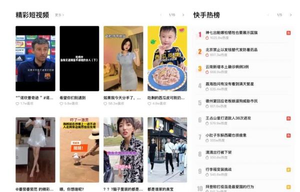 再看另一个短视频巨头快手的网页端,10年的发展,让它的界面功能设计更加完整,采用中短视频结合、横竖视频结合的形式,内容上既有娱乐内容,也有影视短剧等分区,还配合热榜,看起来和B站有些类似。