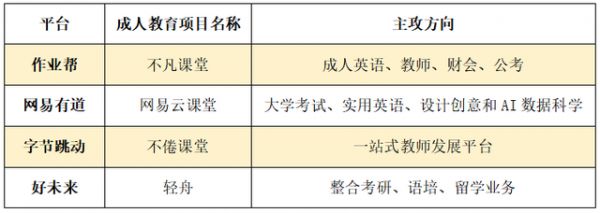 所以当K12教育看起来前路还未明朗之时,有一大票公司选择了转型做成人教育。