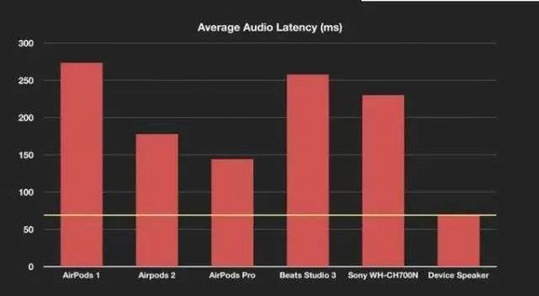 根据国外作曲家、软件开发者科伊尔发布的测试报告,初代AirPods延迟时间为274ms,二代AirPods延迟时间为178ms,AirPods Pro延迟时间为144ms。由此可见,即便是苹果的无线耳机,延迟也很高,达不到专业音频工作者的要求。