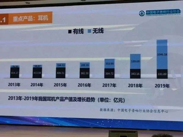 从去年的市场表现来看,如今有很多消费者愿意购买TWS耳机,有线耳机正从原先的主流沦为小众产品。另一份报告显示,从2017年开始,中国市场无线耳机市场占比就已经赶上了有线耳机,到了2019年,无线耳机的市场占比已经是有线耳机的三倍。