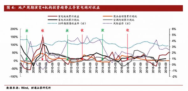 与之形成鲜明对比的是十多年前,在地产行业政策放宽,商品房销售飞速上升的2009年,家电股也随之起飞。2009年家电板块的累计收益和利润都快速上行,全年整体利润同比翻倍,增速达到102%。