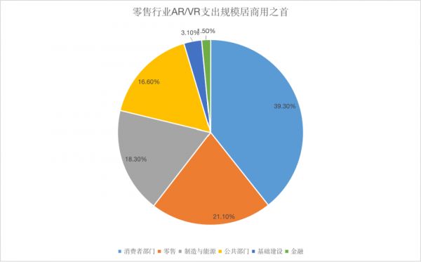 IDC预测,在2018-2023年间,商用领域AR/VR相关支出最高的行业依次是零售、建筑和流程制作。AR/VR在零售领域的应用落地仍有很大空间。ABI Research预测,到2022年,全球将有超过120,000家商店使用AR赋能零售。
