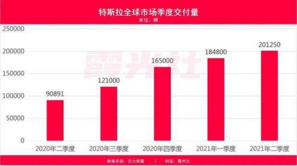 2020年以来,虽然面临着全球疫情影响,工业生产停滞,但特斯拉全球销量依然达到了45.8万辆,同比增长 50.4%。今年第一季度特斯拉生产180338辆,交付量达到184800辆,上半年全球汽车累计产量达到了 386759 辆。从去年第二季度,到今年第二季度,特斯拉的全球交付量数据一路走高。去年第三季度、第四季度的121000辆、165000万辆,同比增长56.6%和 78.2%,今年一季度特斯拉销量184800辆,连续突破历史记录。在这样的趋势下,特斯拉二季度20万销量破纪录,本就在情理之中。