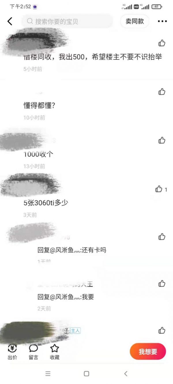 在二手电商平台上,部分出售“四川显卡”的页面评论区里,懂懂笔记看到了许多令二手商家心寒的言论。内容整齐划一全是低价“蹲”一张显卡,至于开出的价格自然也低到离谱,难以接受。