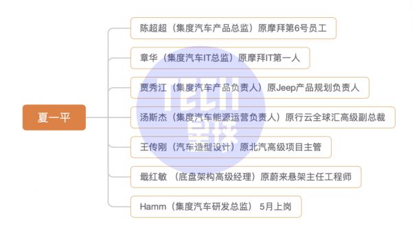 摩拜系成为了集度团队重要的力量,除了集度CEO夏一平外,摩拜系的主要代表,还有陈超超和章华。