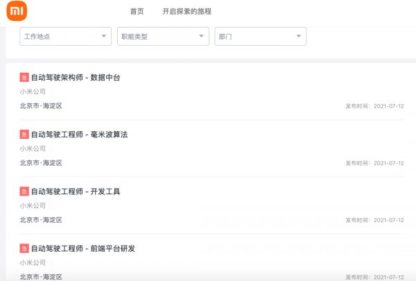 后来宣布加入造车的小米,已于近期向外界公开招聘于汽车相关的职位,每个职位都标有“急”字,可见抢人的激烈和稀缺程度。