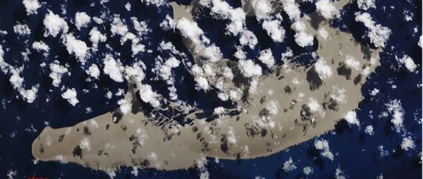 卫星拍摄到汤加群岛附近的浮石筏 | 图源:NASA