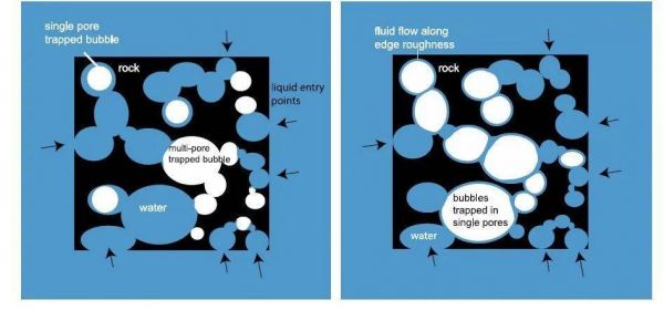 他们发现,浮石的沉浮背后是与水的博弈。浮石中密布着许多头发直径宽的微小孔隙,周围的水在毛细管作用下沿孔隙渗入,并包围在孔洞中无处可逃的气体,形成气泡。由于水的表面张力,这些气泡难以移动,被困在石头中。