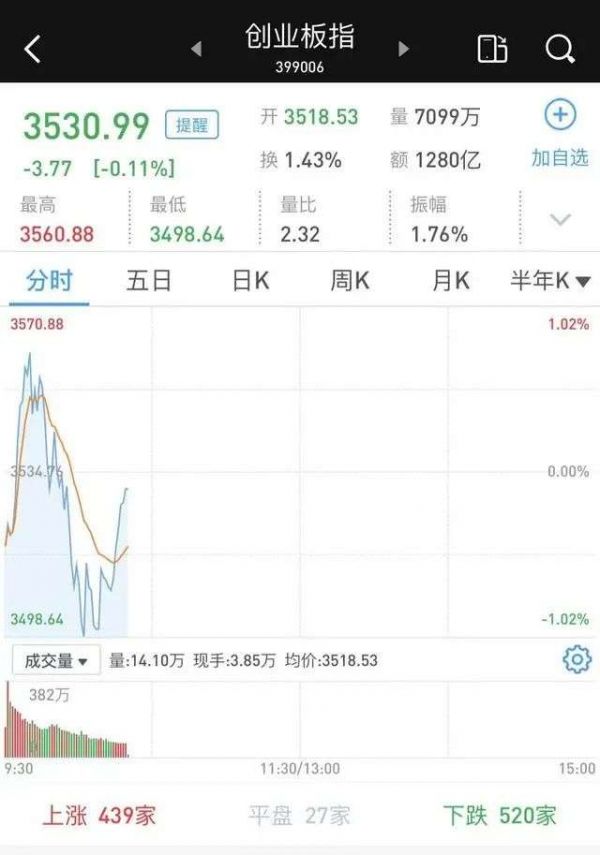不过,就在创业板指超越上证指数之后出现了跳水,盘中一度跌逾1%。