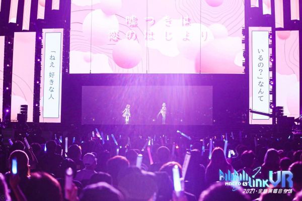 今年BML-VR全息演唱会的压轴,是中日虚拟偶像洛天依和鹿乃的首次“母子组”同台,合唱《谎言是恋爱的开始》,在现场的大屏幕上,全息投影技术让虚拟照入现实,感动了现场上万观众。