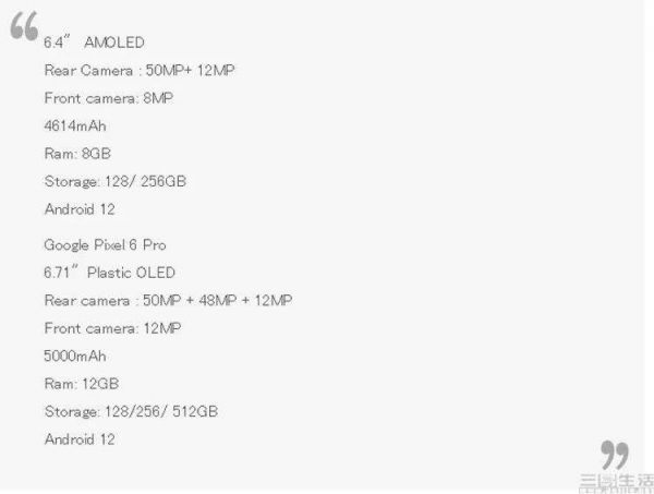 目前泄露的Pixel 6系列硬件参数