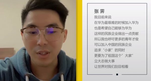 对于选择华为,张霁表示,自己在华为最艰难的时候选择了加入,也是希望自己能够为华为这样的民族企业做出一点贡献,同时还呼吁更多的青年才俊可以加入中国的民族企业,追求小家的同时,更要为了祖国这个大家立大志、做大事,让世界对中国刮目相看。