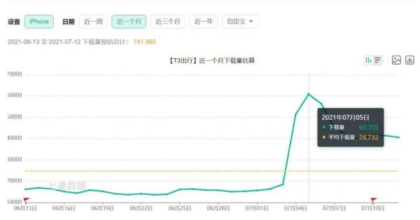 大反攻之下,各大网约车平台迎来了快速的增长。深燃从七麦数据观察发现,7月5日,T3出行的下载量是平日里下载量的三倍。曹操出行也自7月4日之后,迎来了下载量高峰期。