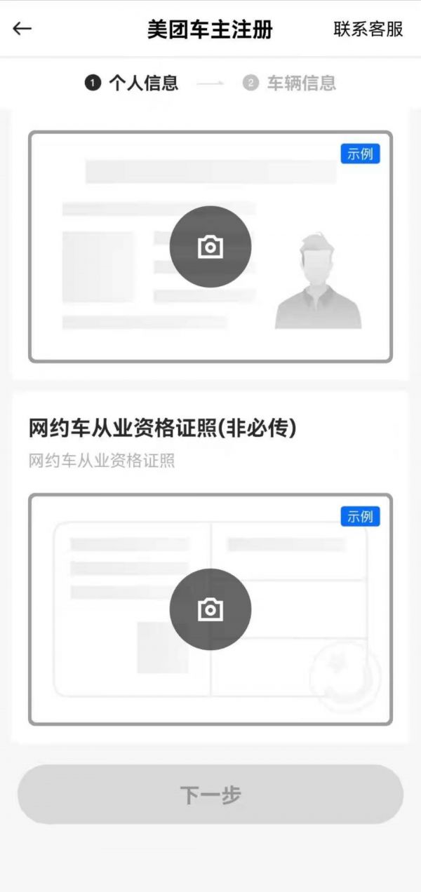 深燃也尝试在美团打车APP申请注册成为美团快车车主,在填报个人信息这一栏,美团并未强制要求车主上传网约车从业资格证照。