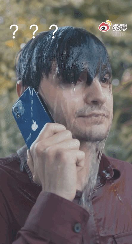 最近,很多人在打开各类社交APP的时候,都注意到了一个“满脸是水”的外国男人,拿着一部蓝色iPhone 12手机放在耳边,整个画面持续3秒左右,脸上的水不停流动,男子面无表情连眼睛都不眨,飘过一行广告语“防溅抗水有一手,放心,有iPhone”。